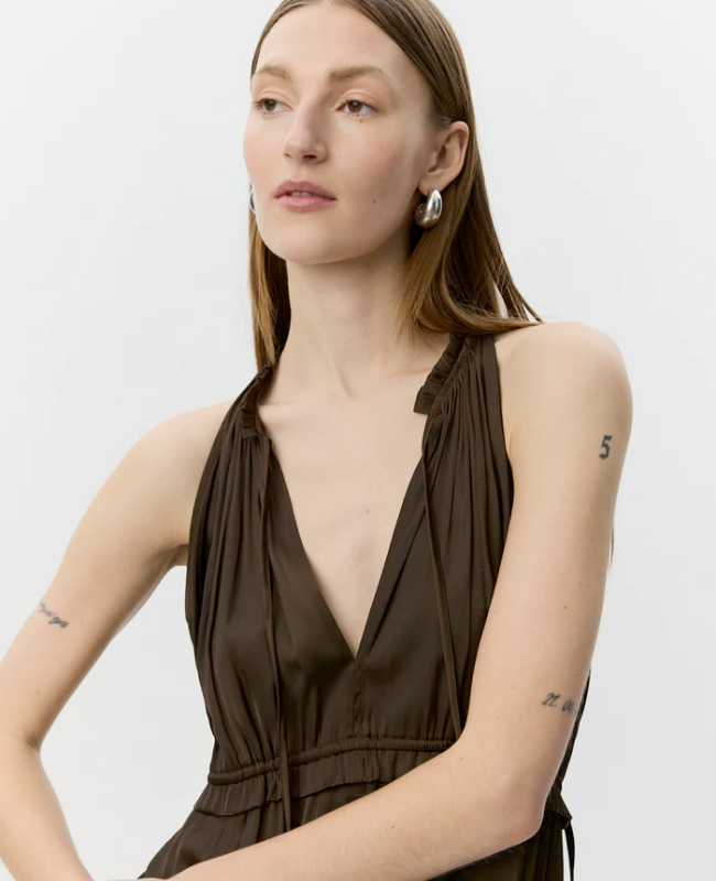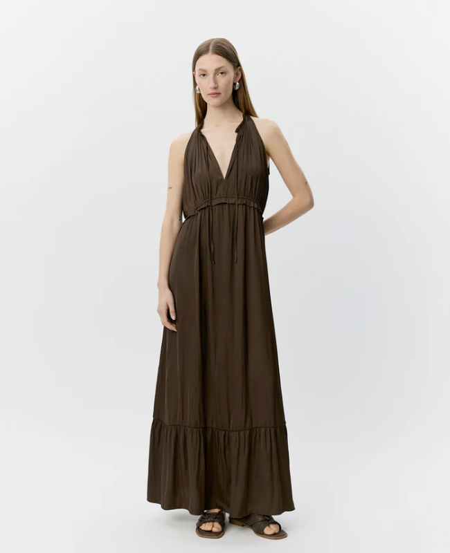 SOFIE SCHNOOR MELSW HALTER NECK MECI DRESS INTENSE BROWN - S262192