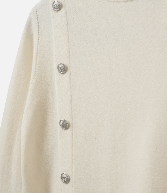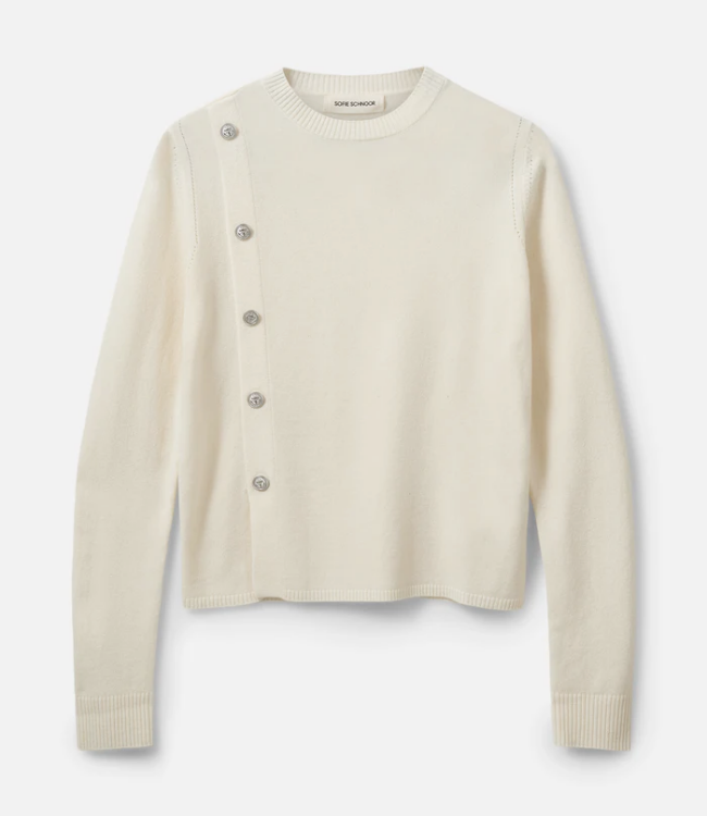 SOFIE SCHNOOR SAISW Knit Strik i off white er en tidløs og elegant striktrøje, der kombinerer klassisk design med fine detaljer. Trøjen har lange ærmer, regular fit og er fremstillet i 100% uld, hvilket gør den både varm, blød og komfortabel.