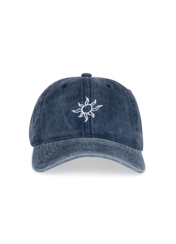 Sommerens accessories er landet. Denne lære kasket fra SUI AVA er i den lækreste blå farve med forvaskede detaljer. Der er broderet en lille sol på kasketten som en eksta lille detalje.