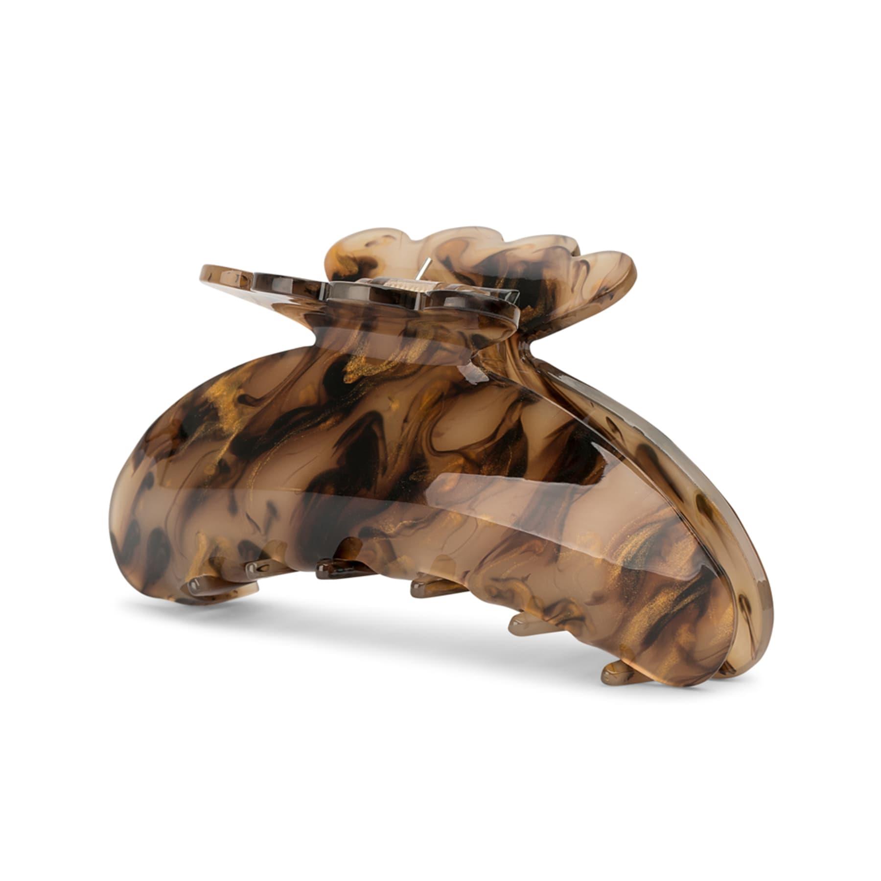 Smuk stor hårklemme fra Suiava i brunlige nuancer som giver et smukt udtryk med lys bagrund som giver det her smukke spil.