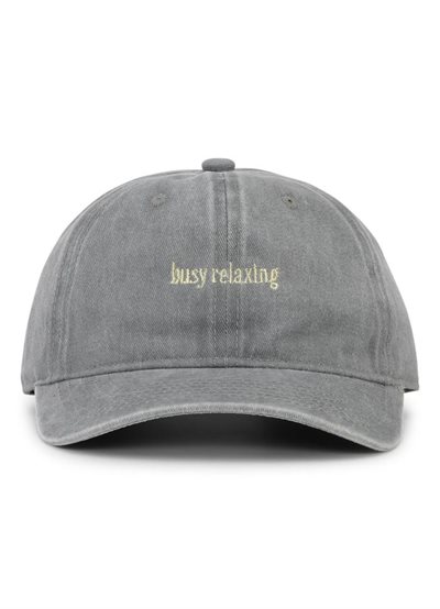 Giv dit outfit et afslappet og cool udtryk med Soft Served Cap fra SUI AVA i farven Licorice. Kasketten har et blødt, vasket look og er dekoreret med den fine broderede tekst “busy relaxing” på fronten, som tilfører et legende og moderne touch.