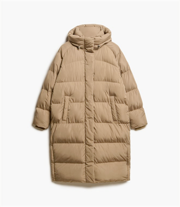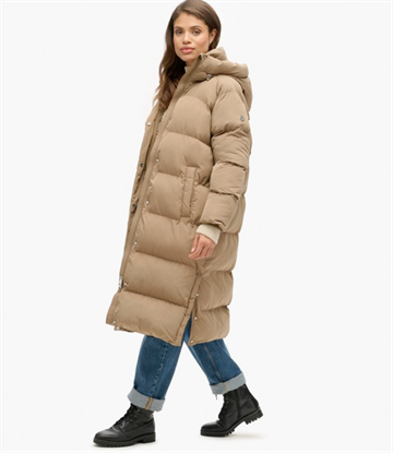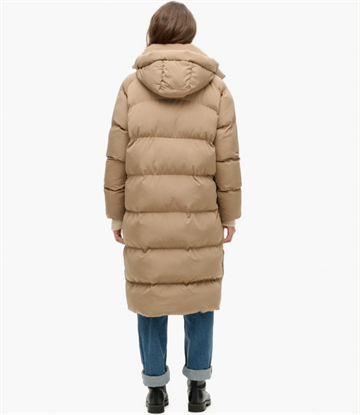 SUPERDRY LANG DUNFRAKKE MED HÆTTE FOSSIL BROWN - W5011901A-8KO