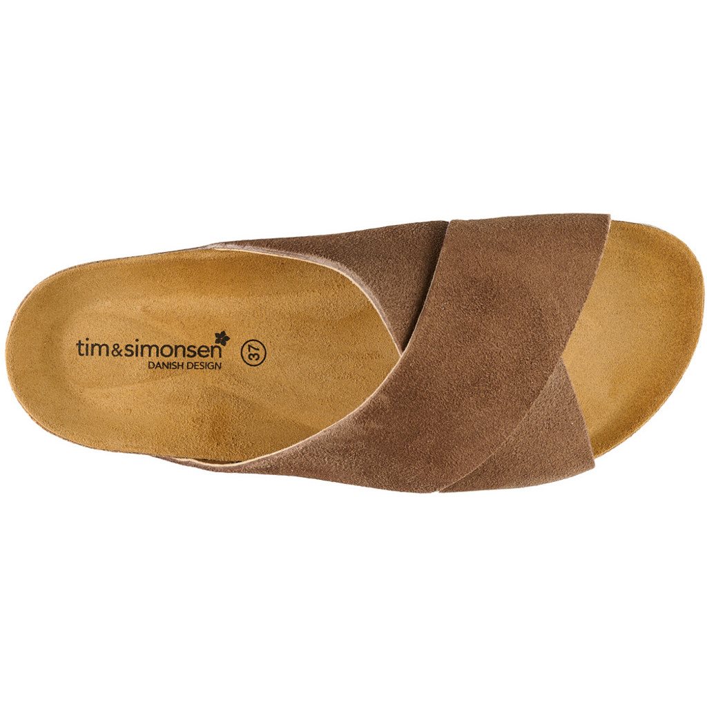 Smuk og komfortabel sandal fra Tim & Simonsen i en varm brun castano nuance. De brede, krydsede remme i blødt ruskind giver et afslappet og stilrent udtryk, som passer perfekt til både sommerkjoler, shorts og lette bukser.