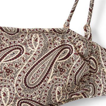 Underdelen har justerbare bindebånd i siderne, så du nemt kan tilpasse pasformen. Det klassiske paisley print i varme bordeaux nuancer giver et eksklusivt og sommerligt udtryk – perfekt til både strand og pool.