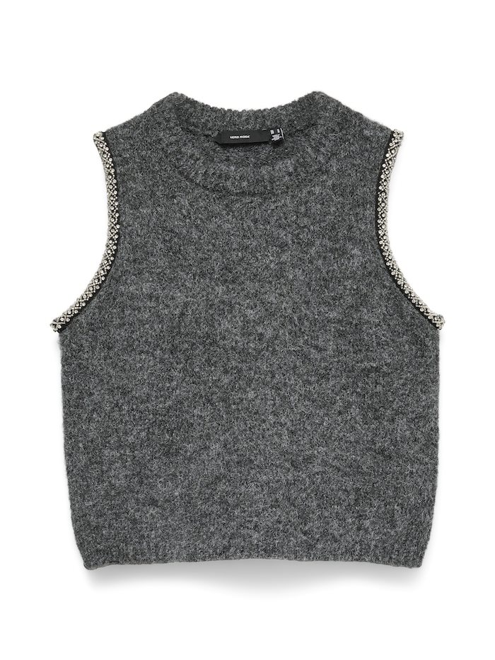 VERO MODA FIRENZE SL O-NECK VEST VIP DARK GREY MELANGE - 10341693