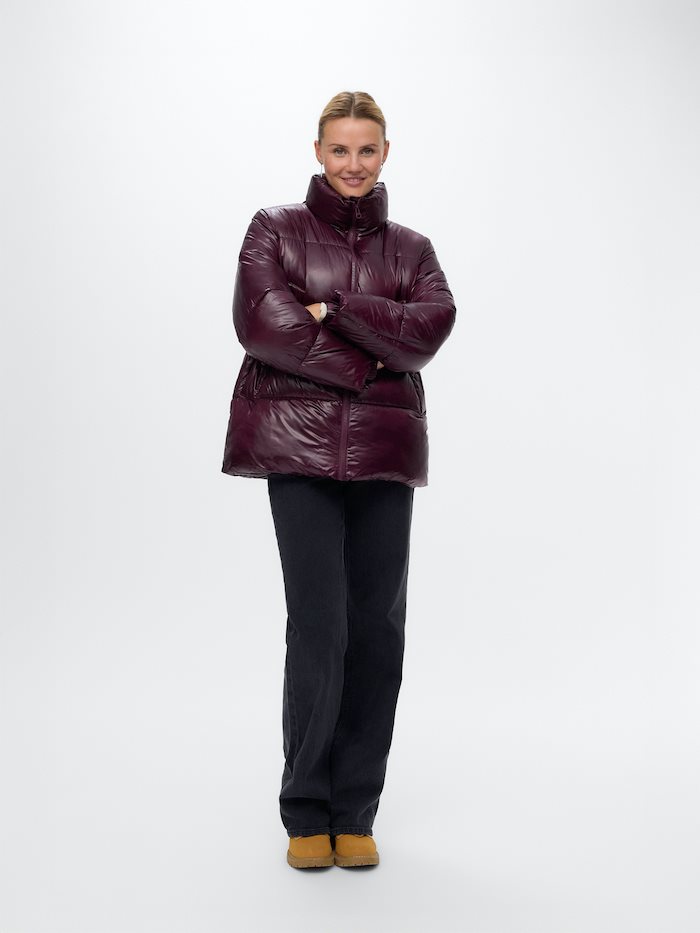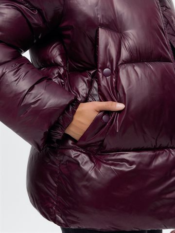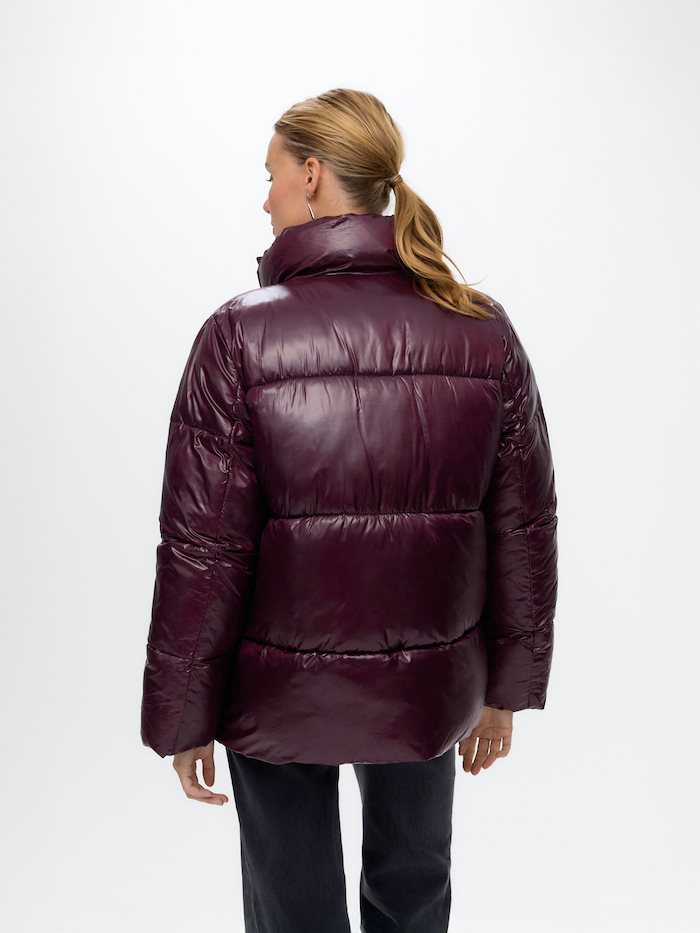Denne kort pufferjakke har et moderne, blankt finish og en afslappet pasform, der giver både komfort og cool attitude.