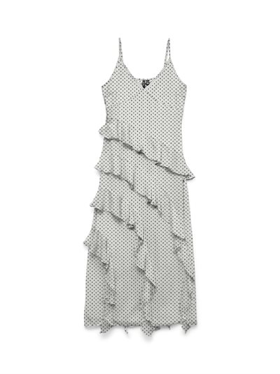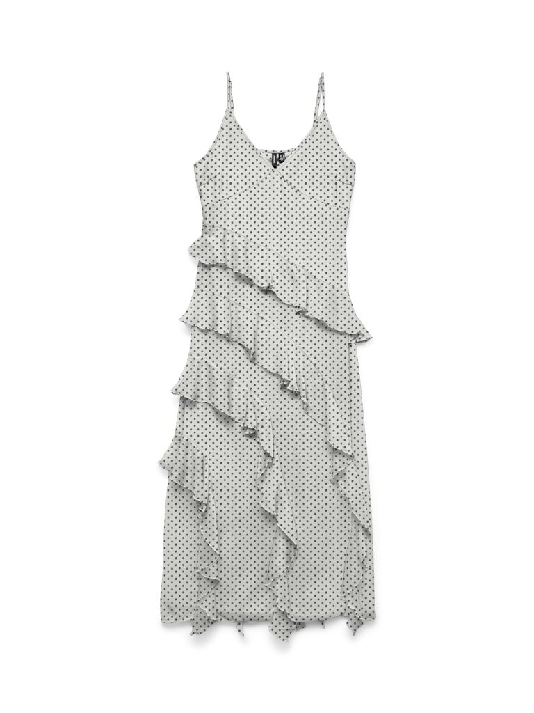 VERO MODA SMILLA SL LONG FRILL DRESS SNOW WHITE BLACK DOT - 10346307