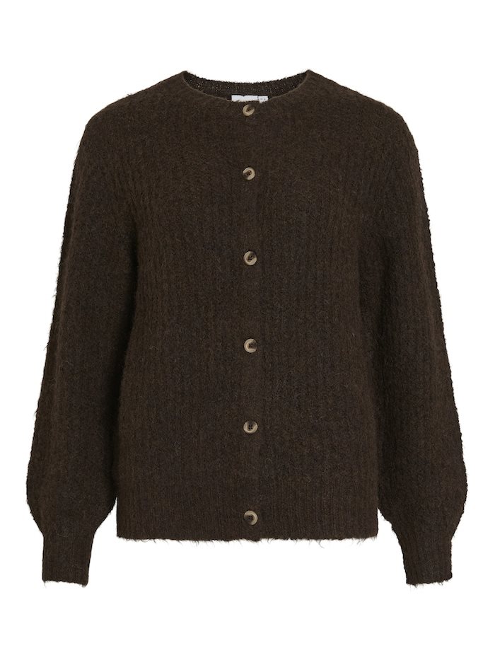 Vila Ampe O-Neck L/S Knit Cardigan i farven Coffee Bean er en lækker og alsidig strikcardigan, der kombinerer komfort med feminine detaljer. Den lukkes med knapper foran og har let puffede ærmer, som giver et elegant og moderne udtryk.