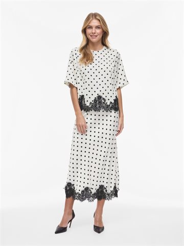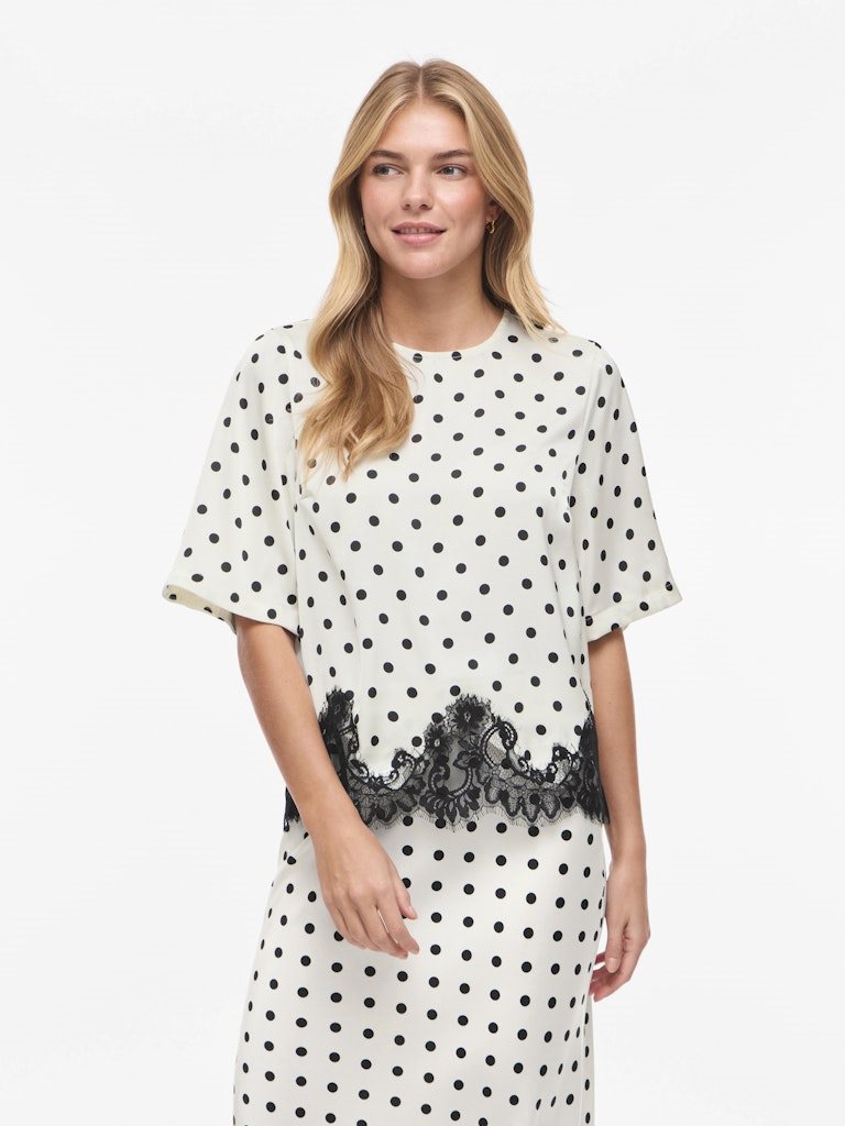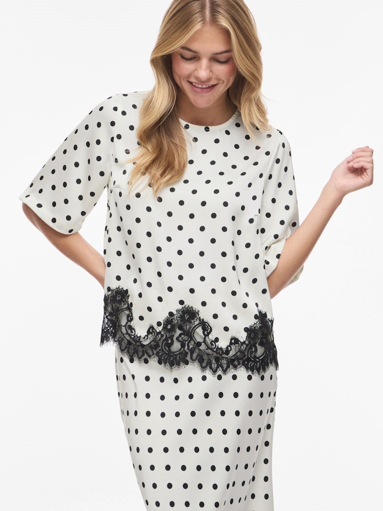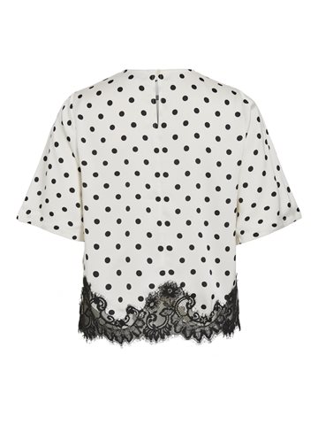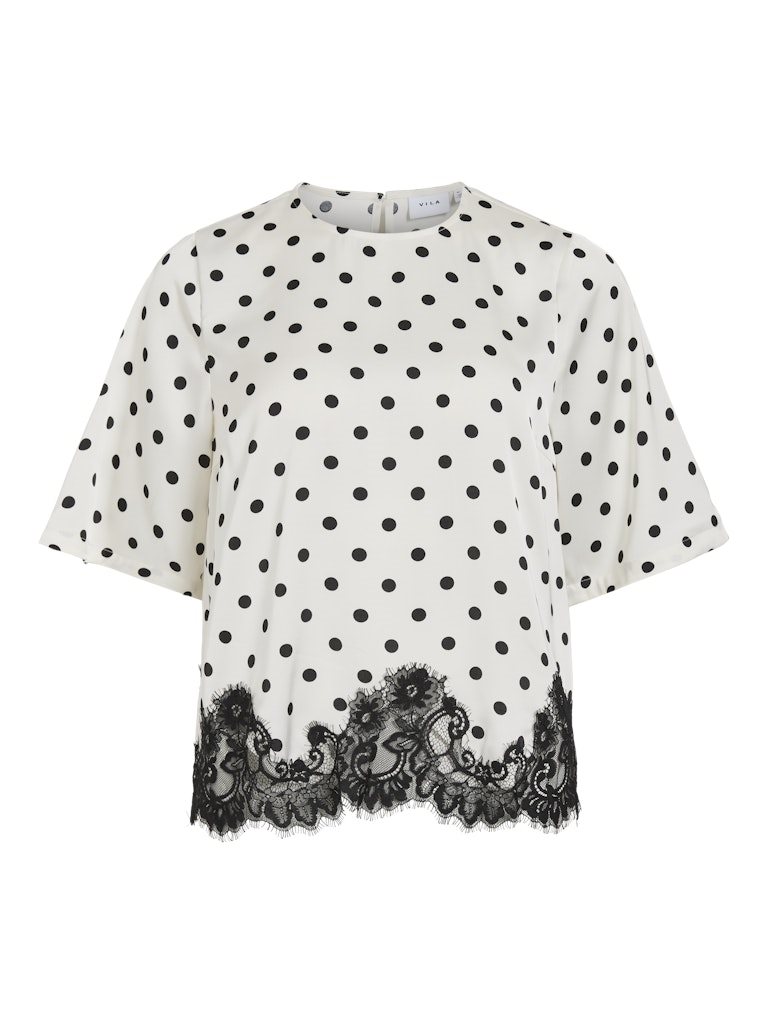 VILA DOTA 2/4 LACE TOP BIRCH BLACK DOTS - 14119274