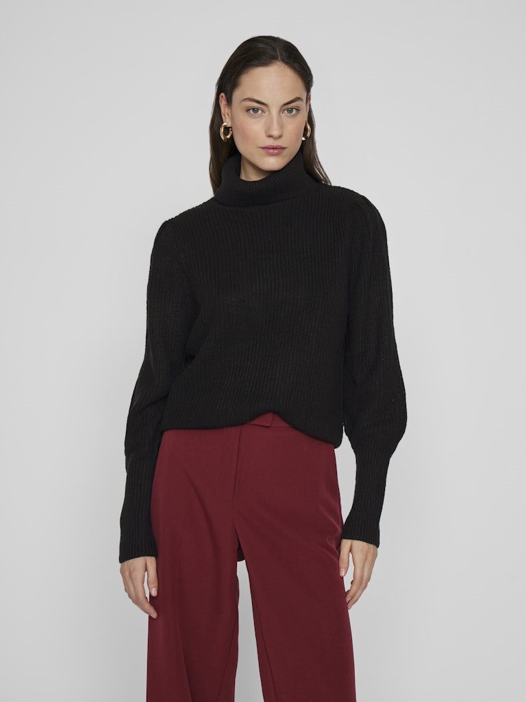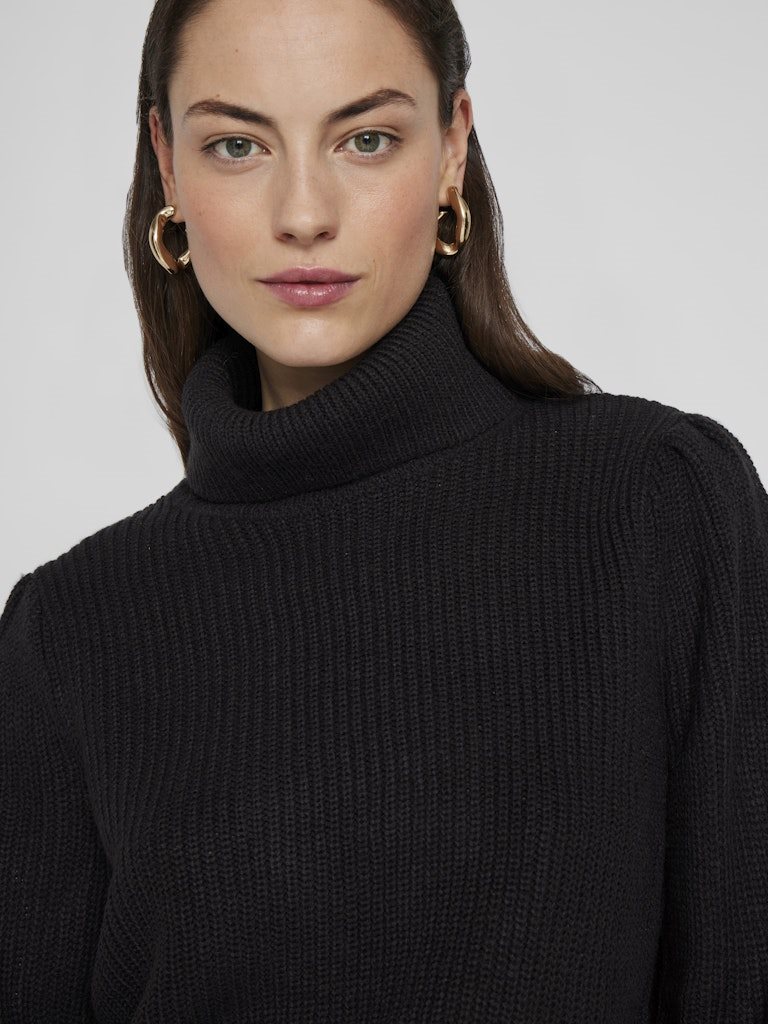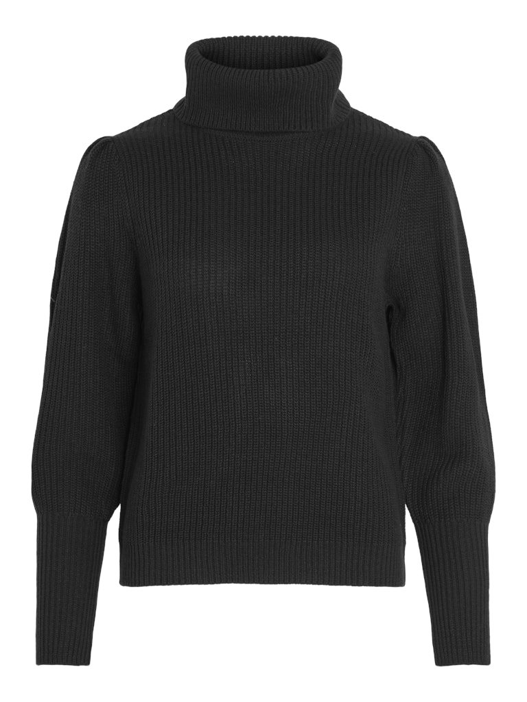VILA LOU NEW ROLLNECK L/S KNIT TOP BLACK - NOOS 14075811