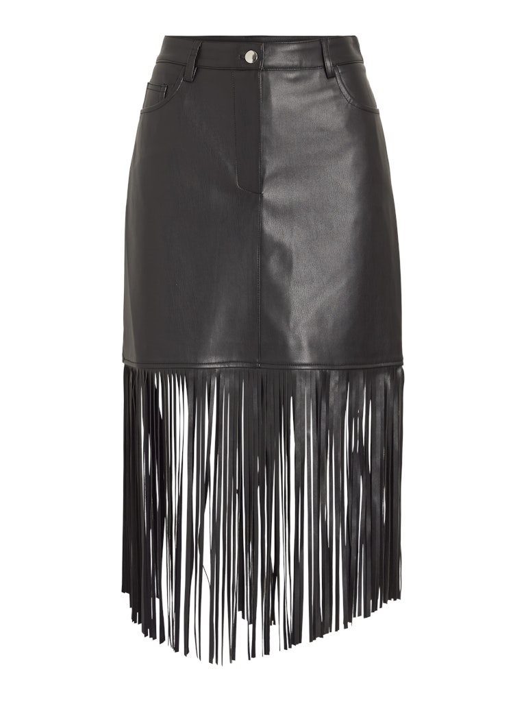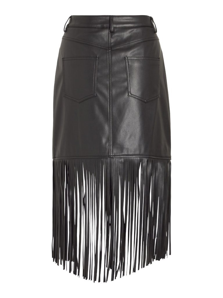 VILA PRANA FRINGE SHORT COATED SKIRT BLACK - 14109533