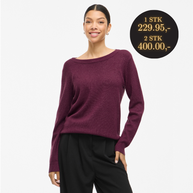 VILA RIL FIG DARK MELANGE STRIK O HALS - 14054177