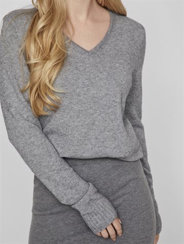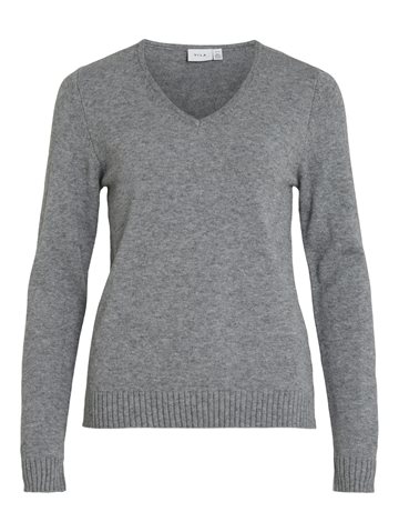VILA RIL MEDIUM GREY MELANGE STRIK V-HALS - 14042769
