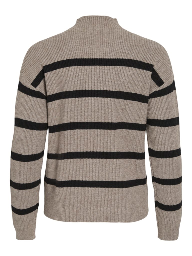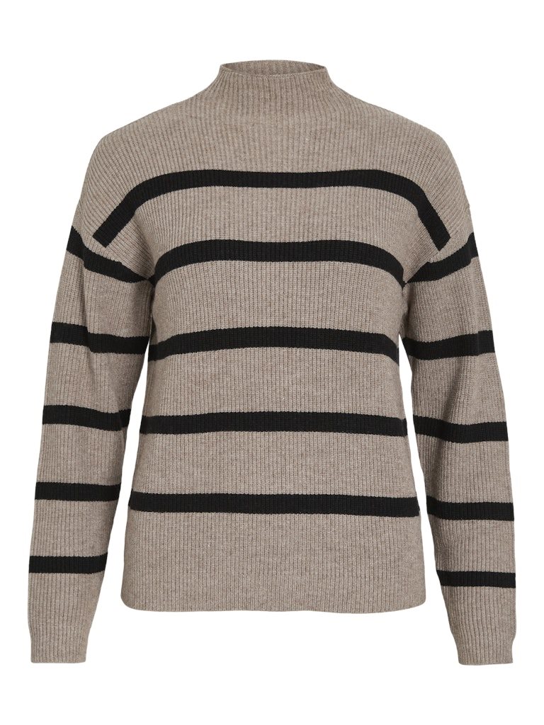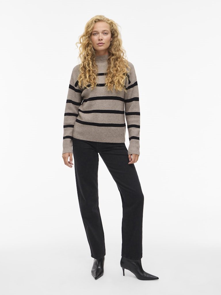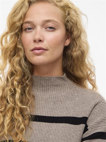 Skøn blød strik med striber fra Vila. Strikken har mockneck, nedsænkede skuldre og en lettere løs pasform.