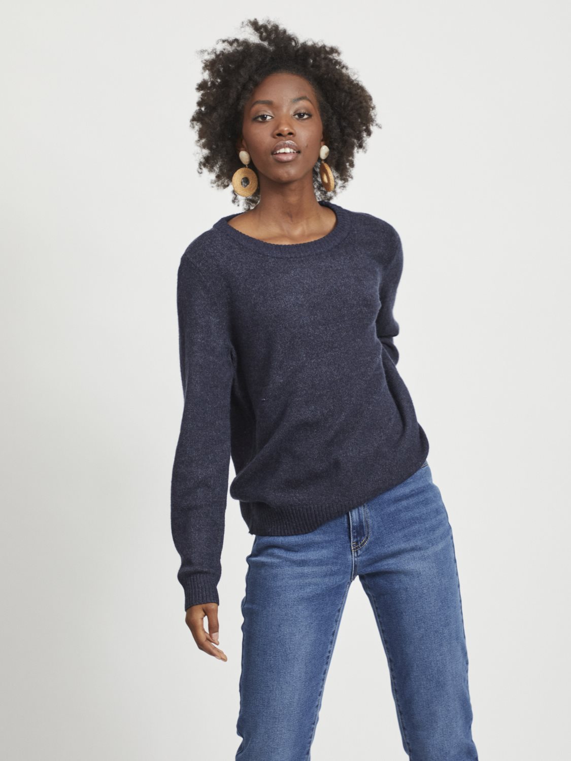 VILA VIRIL O - NECK L7S KNIT TOP  STYLE: 14054177 COLOR: ECLIPSE/MELANGE