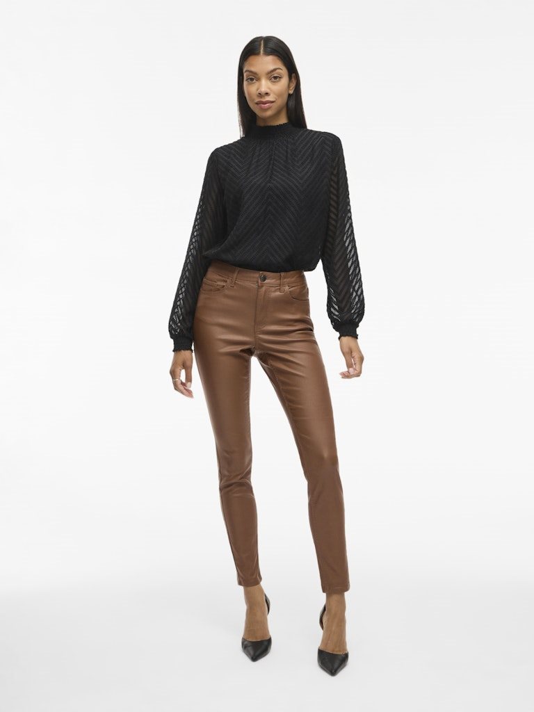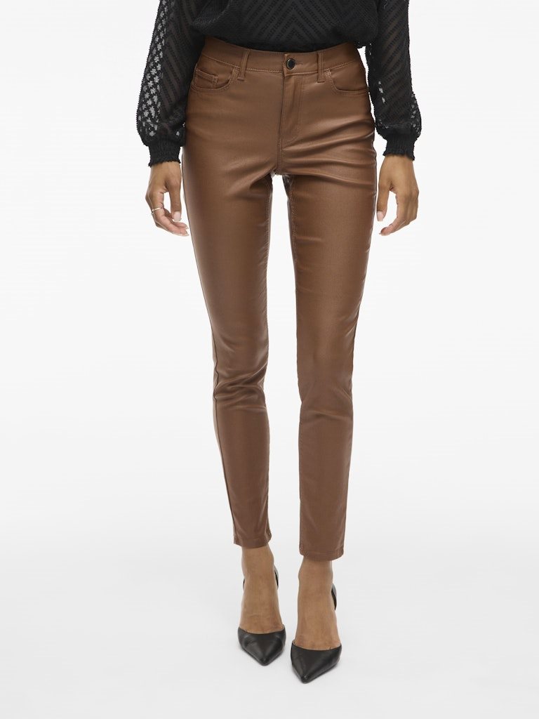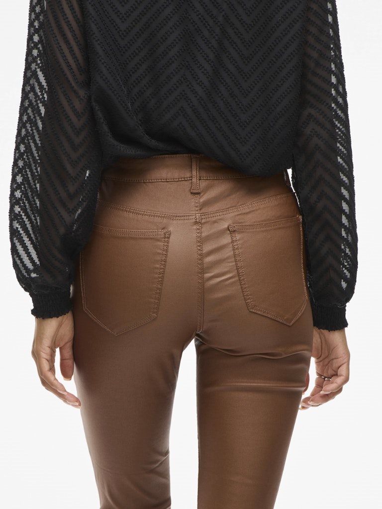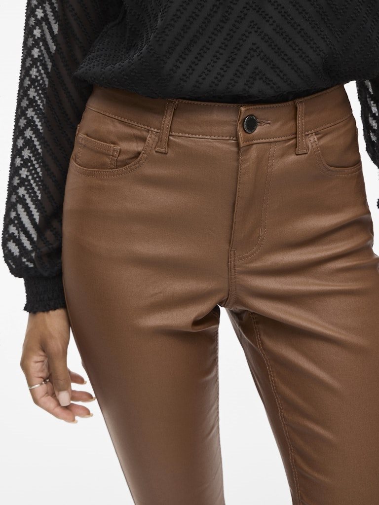 VISARAH Coated Pant – Toffee Skinny Fit Bukser fra VILA