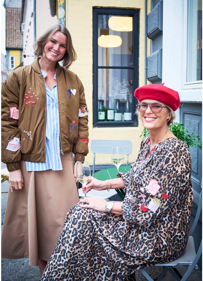 Kjolen har en flatterende V-hals og en løs, afslappet pasform, der giver både komfort og et effortless udtryk. De fede patches tilfører kant og gør modellen helt unik – perfekt til dig, der elsker styles med personlighed.