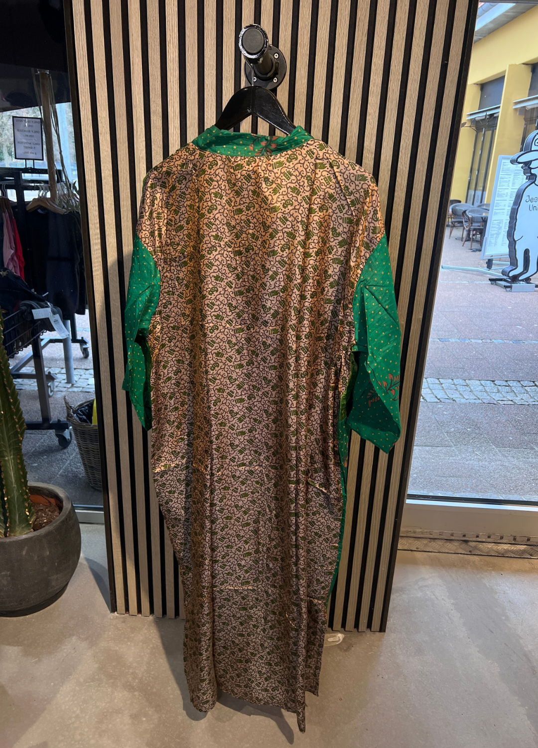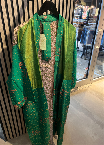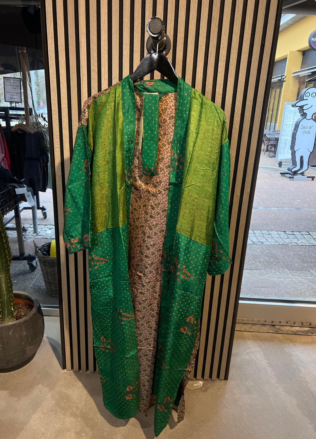 Denne lange kimono er fremstillet i silkeblødt materiale med smukke, farverige prints og unikke detaljer, der giver et luksuriøst og personligt udtryk. Hver kimono er helt unik, hvilket gør den til et særligt statement-piece i garderoben.