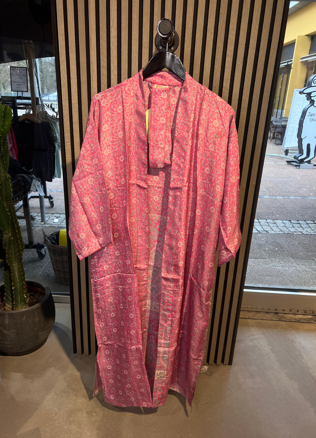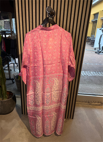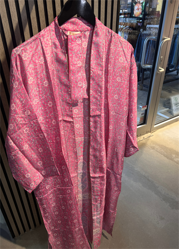 Denne lange kimono er fremstillet i silkeblødt materiale med smukke, farverige prints og unikke detaljer, der giver et luksuriøst og personligt udtryk. Hver kimono er helt unik, hvilket gør den til et særligt statement-piece i garderoben.