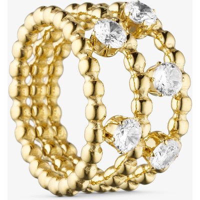 En elegant fortolkning af det populære boble-design. Boble ringen fra Wolff Jewelry er fremstillet i sterling sølv og belagt med 18 karat guld, hvor de skinnende sten tilføjer et ekstra touch af luksus og eksklusivitet.
