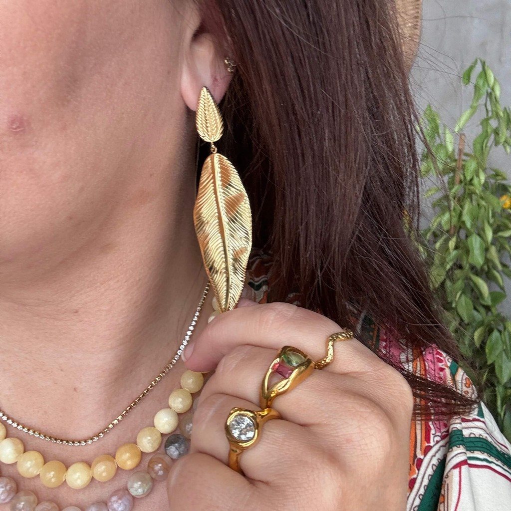 Det fine bladmotiv er udført med delikate detaljer, der skaber et levende spil i lyset og fremhæver smykkets lette og elegante design. De slanke, bevægelige øreringe tilfører både dynamik og femininitet, hvilket gør dem perfekte til både hverdag og festlige anledninger.