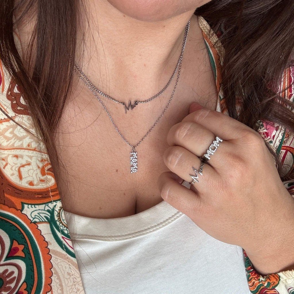 Det smukke “MAMA” vedhæng er dekoreret med funklende zirkonia sten, som giver halskæden et eksklusivt og iøjnefaldende udtryk – samtidig med at designet forbliver stilrent og anvendeligt til både hverdag og fest.