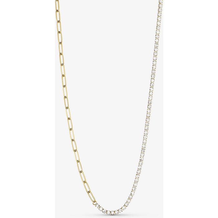 WOLFF Jewelry Tara Halskæde i guld og sort kombinerer tidløs elegance med et moderne twist. Halskæden er designet med fine, delikate kædeled og smykket med funklende zirkonia-sten, hvilket giver en perfekt balance mellem et klassisk og råt udtryk.