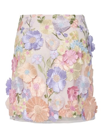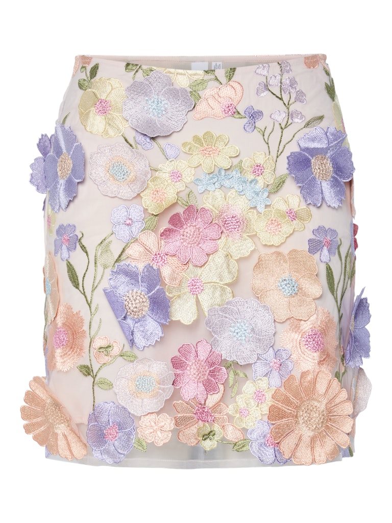 Smuk og feminin kort nederdel med dekorative 3D blomster i fine pastelfarver. Nederdelen har et eksklusivt og iøjnefaldende udtryk, der giver dit outfit et elegant og sommerligt touch. Perfekt til både festlige anledninger og når du vil gøre lidt ekstra ud af hverdagslooket. Style den med en fin bluse eller med YAS FLOWERING TOP, som matcher nederdelen.