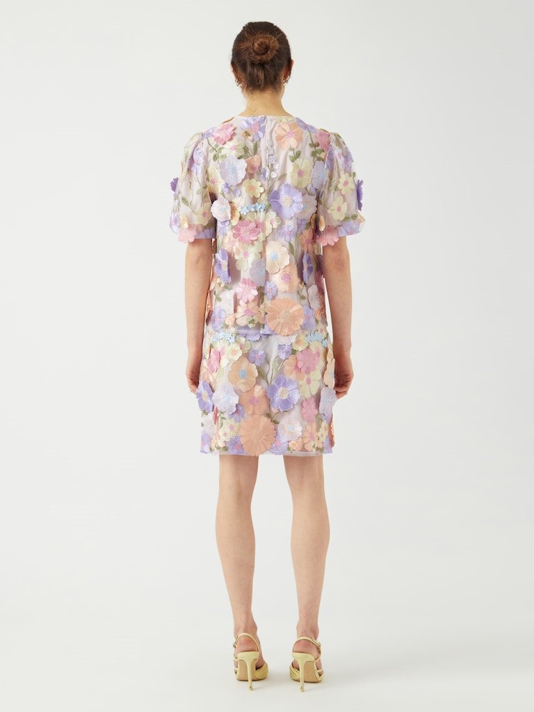 De detaljerede blomsterapplikationer skaber liv og struktur, mens pasformen sidder flot og feminint på kroppen.