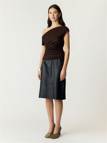 Toppen er designet i en blød og fleksibel kvalitet med stretch, som sikrer en behagelig pasform og god bevægelsesfrihed. Den dybe brunlige “Coffee Bean” farve tilfører varme og eksklusivitet til dit outfit.