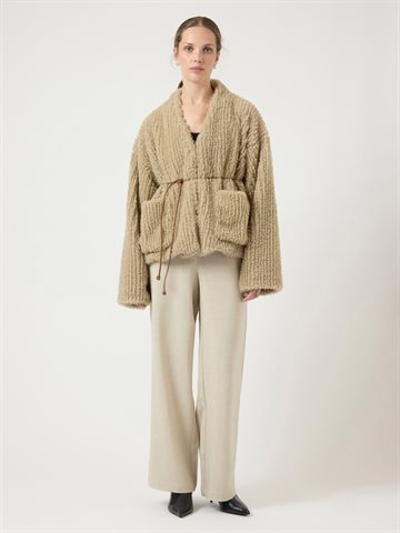 YASKIRA LS JACKET er en elegant og tidløs jakke i en lys birch-nuance, perfekt til forårs- og sommersæsonen. Jakken har et feminint snit med V-hals og bindebælte i taljen, som giver mulighed for at fremhæve silhuetten eller bæres mere afslappet for et moderne look.