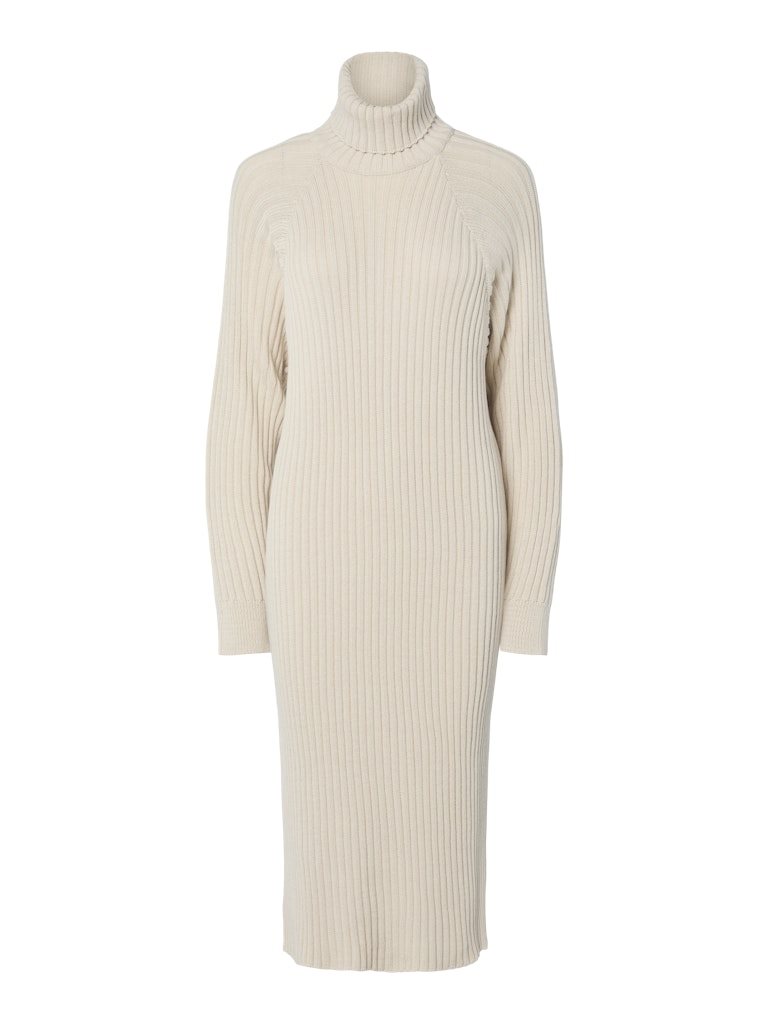 YAS MAVI KNIT MEDI ROLLNECK DRESS NOOS BIRCH - 26028660