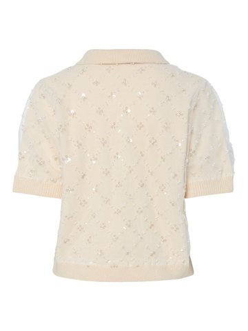 Tilføj et strejf af elegance til din garderobe med denne smukke strik cardigan fra Y.A.S. Designet i en blød og behagelig kvalitet med fine palietdetaljer, der giver et eksklusivt og feminint udtryk. Cardiganen har korte ærmer, klassisk krave og frontknaplukning, hvilket gør den ideel både til hverdag og fest. Den delikate nude farve og strukturerede overflade skaber et sofistikeret look, der nemt kan styles med alt fra jeans til nederdele.