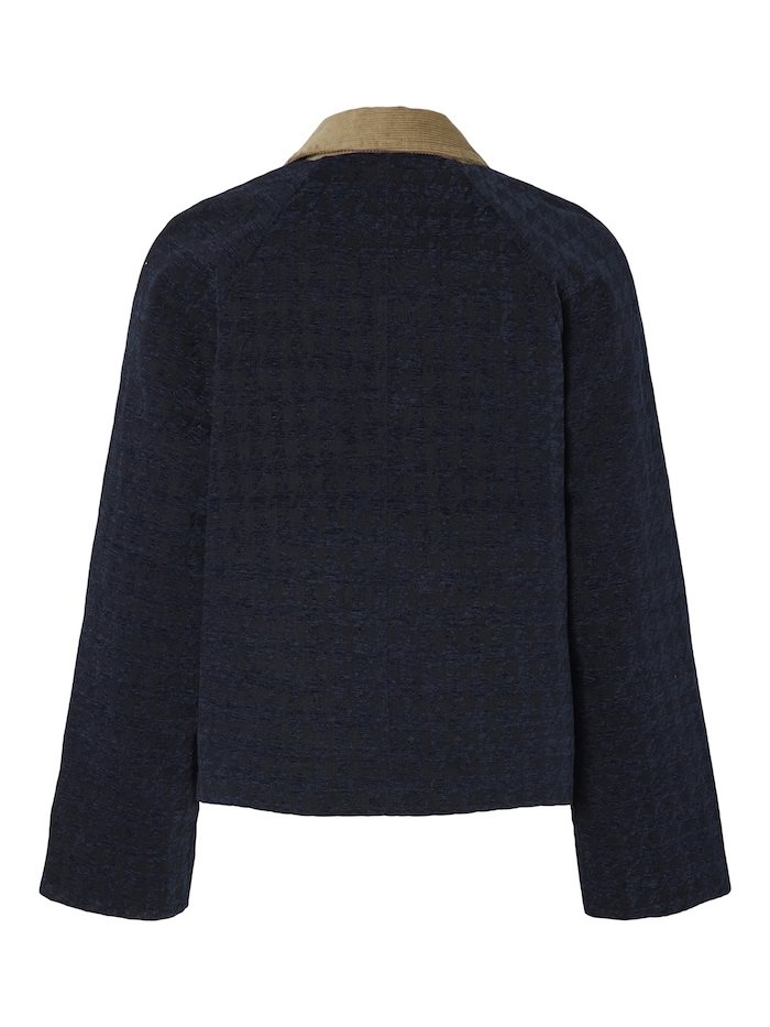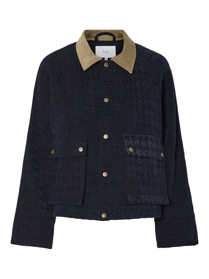 Opgrader din garderobe med den elegante YAS VICKY LS JACKET i Navy Blazer. Jakken er designet i et mørkeblåt mønstret materiale, der kombinerer stil og struktur, og er fremstillet i en kraftig kvalitet, som gør den ideel til både overgangssæsonen og de kølige dage. Den beige kontrastkrave tilføjer et klassisk touch, mens de iøjnefaldende guldknapper giver et eksklusivt og sofistikeret udtryk.