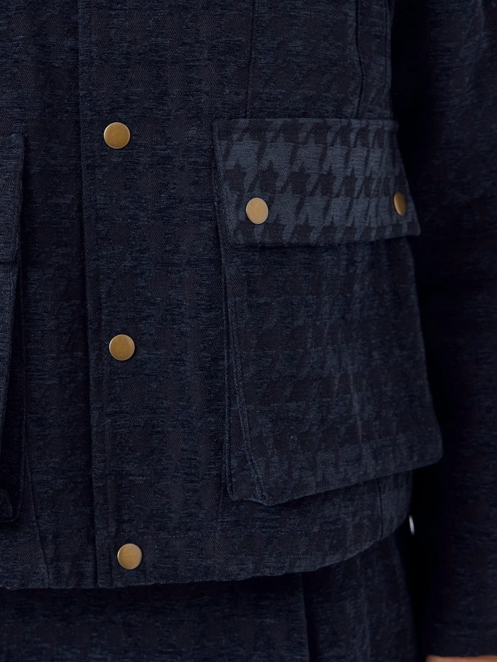 Jakken kan styles alene som statement-piece eller matches med den tilhørende nederdel for et komplet, chic sæt, perfekt til både arbejde, middage og events.