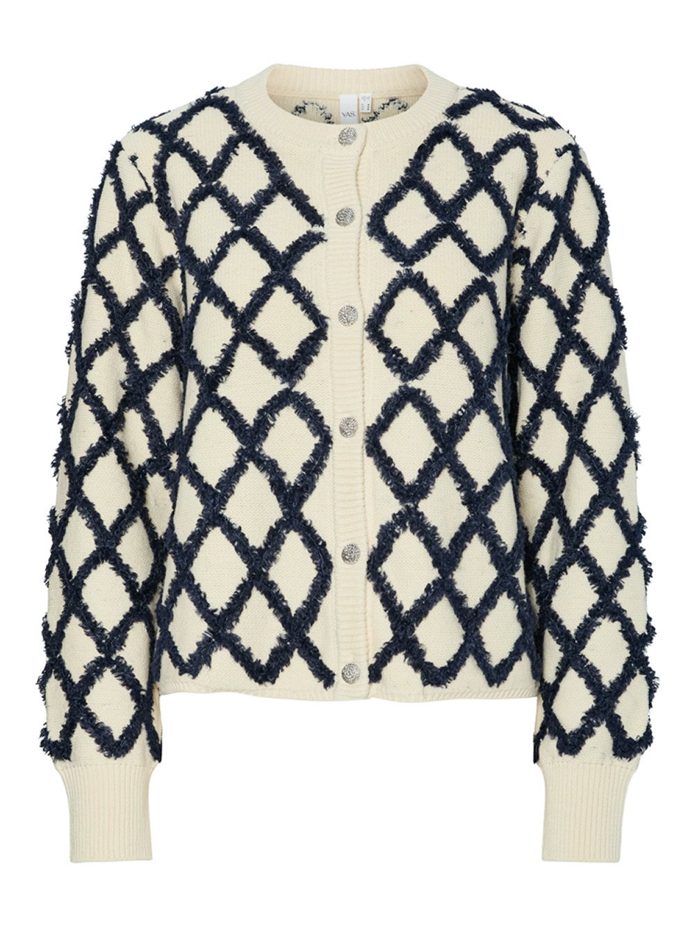 Den har rund hals, lange ærmer og ribbede manchetter, som giver et flot og velafsluttet look. De fine strikkedetaljer tilfører struktur og et elegant touch, mens knaplukningen gør cardiganen nem at style både åben og lukket. En perfekt style til både hverdag og arbejde – brug den over en kjole, top eller skjorte.
